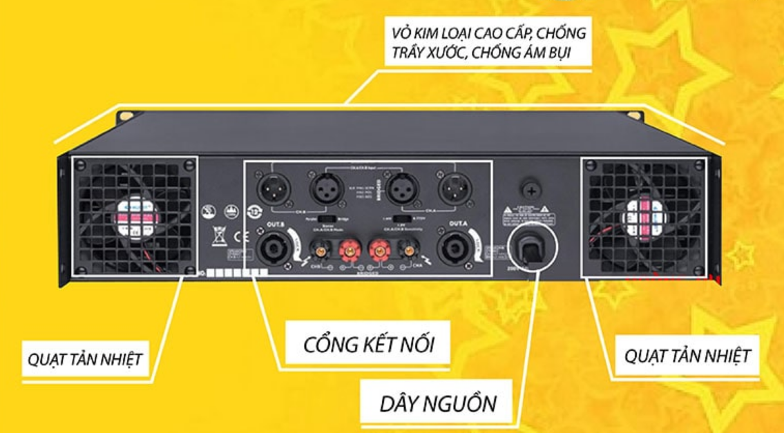 Cùng với công nghệ bảo vệ nguồn vào, giúp cho cục đẩy có tránh được những tính huống điện áp đầu vào lớn hơn hoặc bé hơn mức quy định, thì thiết bị sẽ tự động ngắt đảm bảo được an toàn cho toàn hệ thống âm thanh và người dùng.