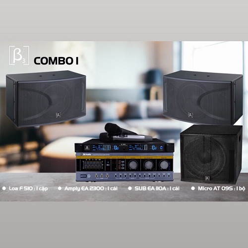 Combo 01 bao gồm một cặp loa F510, đây cũng là một thiết bị âm thanh giữ vai trò quan trọng lên đến 55% trong dàn karaoke gia đình B3. Loa B3 F510 sản xuất bằng những vật liệu cao cấp được chọn lọc kỹ càng bao gồm 2 đường tiếng với âm Bass nội lực và âm Treble trong trẻo. Tần số đáp ứng dao động từ 45Hz-19kHz với độ nhạy lên đến 92dB và công suất hoạt động là 800W mang đến những âm thanh mượt mà, chắc khỏe và không bị méo tiếng.