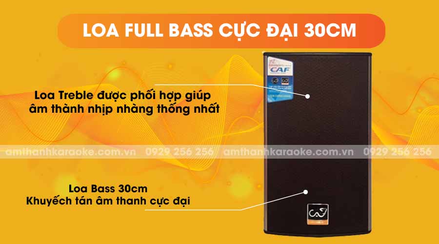 Dòng loa này của hãng CAF có mức công suất RMS là 250W và công suất cực đại có thể lên đến 1000 W, loa có thể sử dụng cho nhiều không gian, làm việc lâu những vẫn cho ra âm thanh mạnh mẽ. Với mức trở kháng 8 ôm, Loa dễ dàng kết nối với các thiết bị âm thanh, hỗ trợ cho dàn âm thanh.